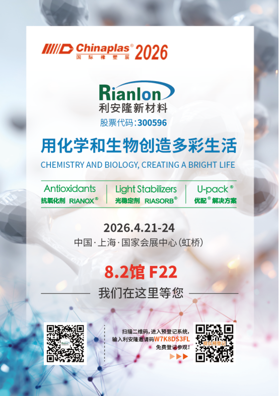 苏州盛会圆满结束,利安隆的创新步履不停。4月21日-24日,利安隆将转战上海,在Chinaplas 2026 国际橡塑展8.2馆F22展位恭候全球合作伙伴!让我们再度相聚,共话高分子材料创新与可持续发展的无限可能!